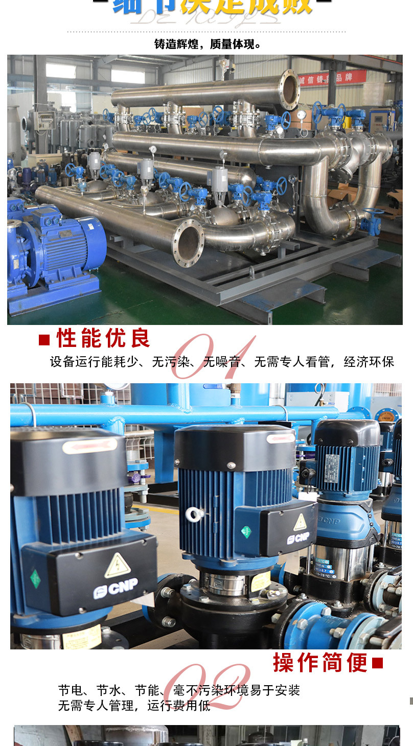 1.采用工控計算或智能化溫度調節器使供水溫度智能控制,即供水溫度按程序設定可隨室外環境溫度、標準間溫度和時間而變化,供熱質量高、節能。